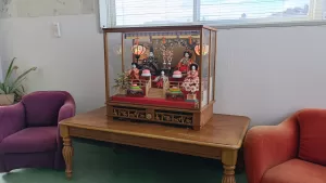 毎年2月になると、子どもたちの成長と幸せを願って、ひな人形を飾っています。